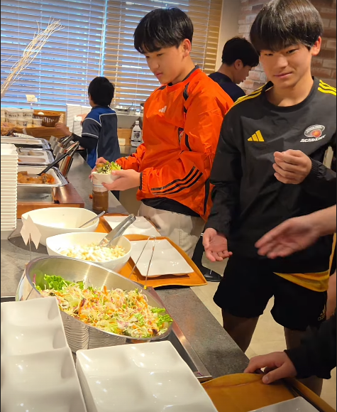 その後、朝食をいただきました。みんな今日の練習に備えてたくさん食べました。